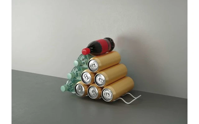 Estante de latas para el frigorífico de alambre plastificado. Se pueden apilar hasta 15 latas de bebidas convencionales sin que se deslicen