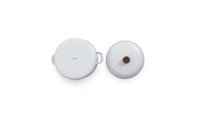 | Alegre cualquier comida con nuestra batería de cocina esmaltada. El esmalte y los detalles de acero inoxidable cocido realzan cualquier mesa, tanto si vas a cenar al aire libre como si vas a llevar un poco de naturaleza al interior. Cada artículo está decorado con cobre hecho a mano, creando piezas únicas que forman un conjunto cohesionado. Detalles