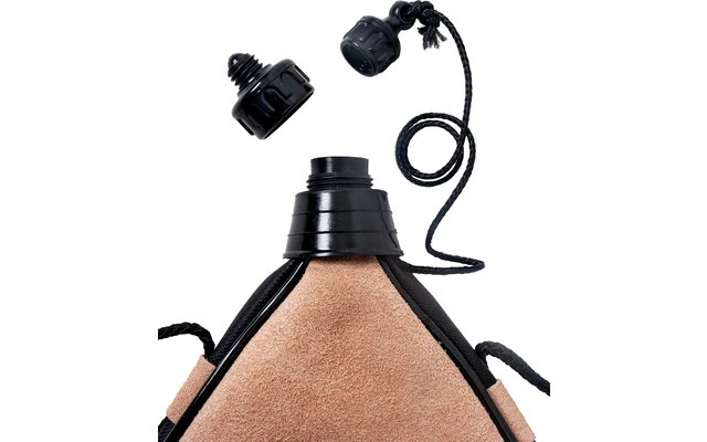 Sin embargo, un detalle moderno es la bolsa interior de polietileno apta para alimentos. Con correa para el hombro, tapón de llenado (grande) y tapón de pulverización (pequeño), así como tapa de protección.