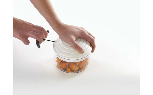 La revolución en la cocina Picadora de verduras y frutas con mecanismo de tracción suave. También es adecuado para mezclar y remover salsas y salsas. Cortar nunca ha sido tan fácil.
