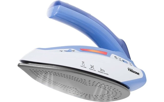 Mango plegable, suela grande con revestimiento antiadherente. Depósito de agua extraíble. Luz piloto y control de temperatura infinitamente variable. Corriente alterna 115 / 230 V.